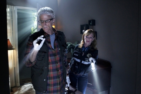 D.B. Russell (Ted Danson), left, and Catherine Willows (Marg Helgenberger) were paired briefly during season 12. (SONJA FLEMMING/CBS)