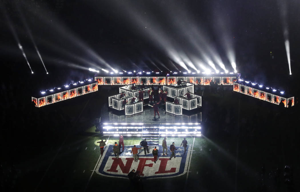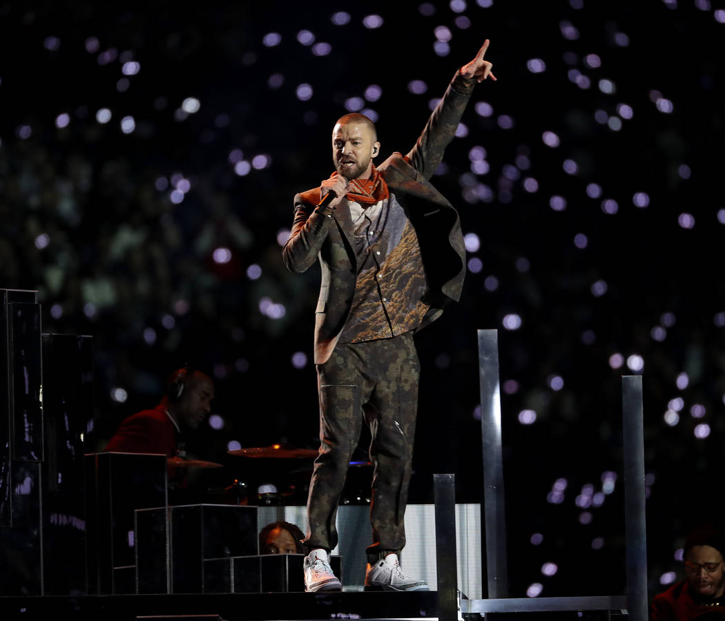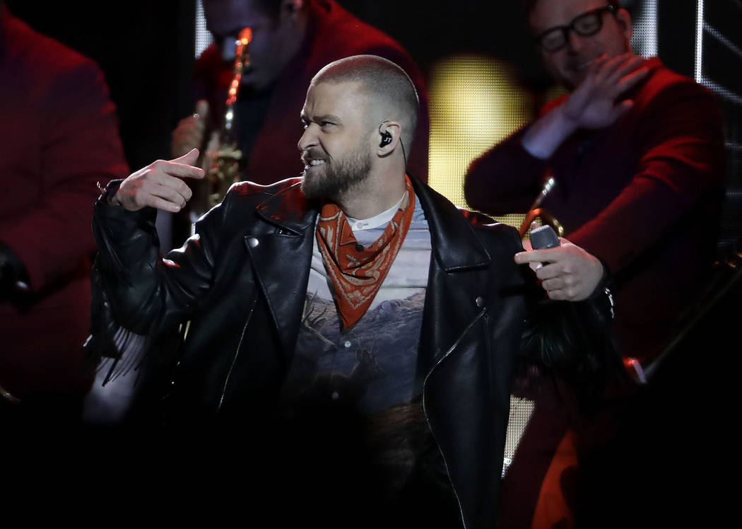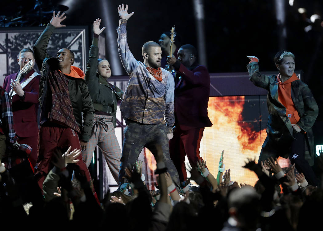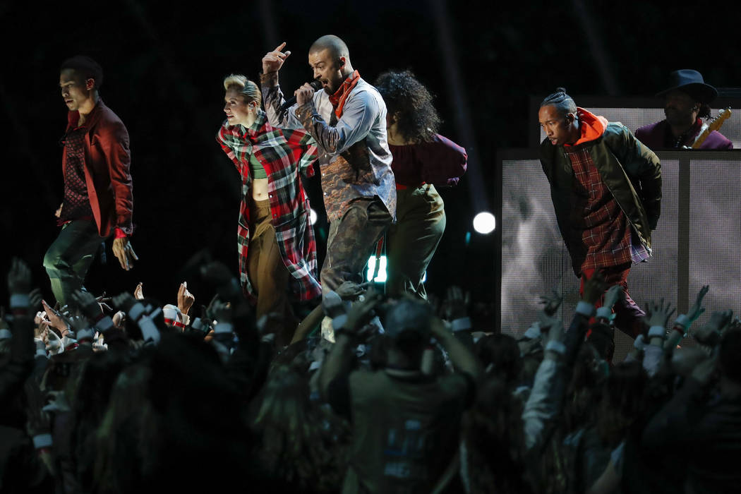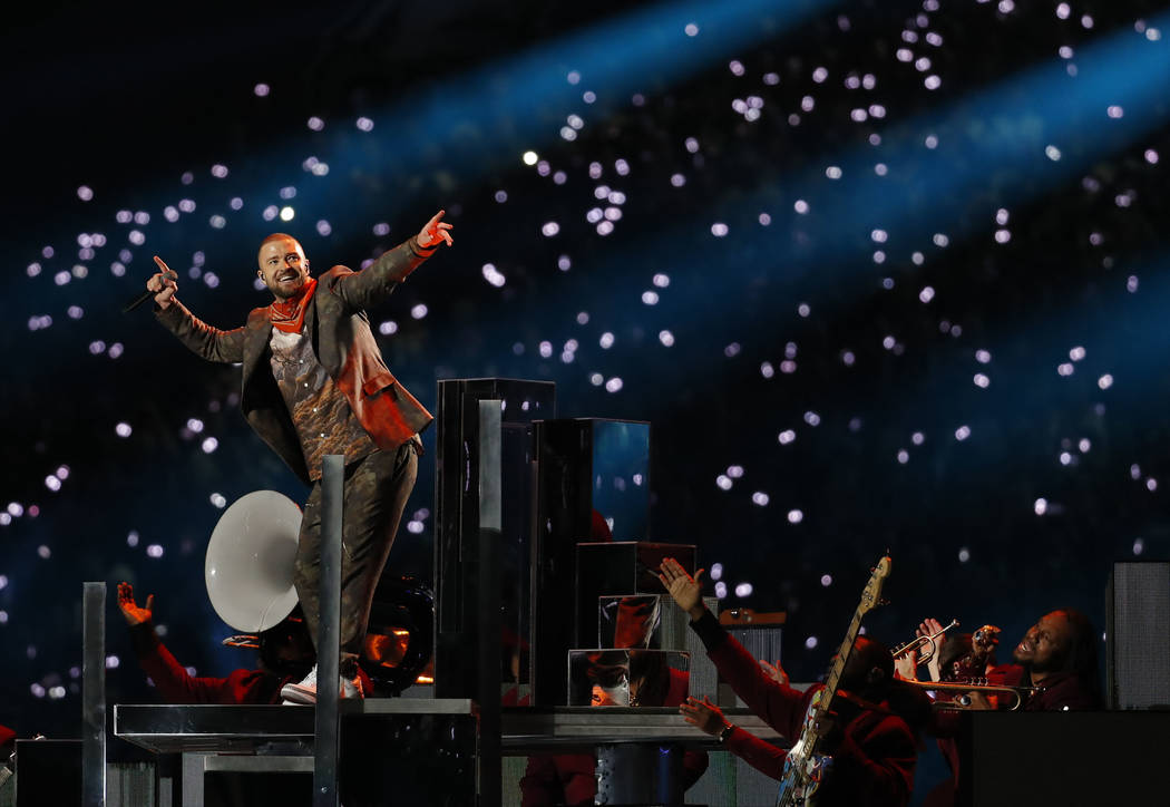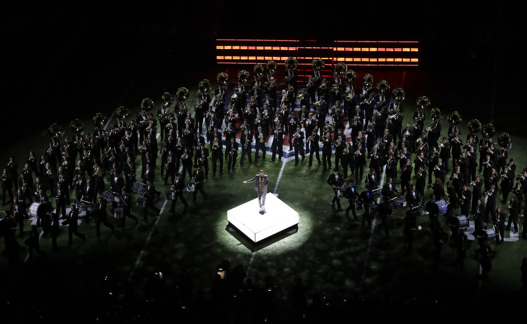 Timberlake danced atop the NFL logo and then with a marching band for “Suit & Tie.”