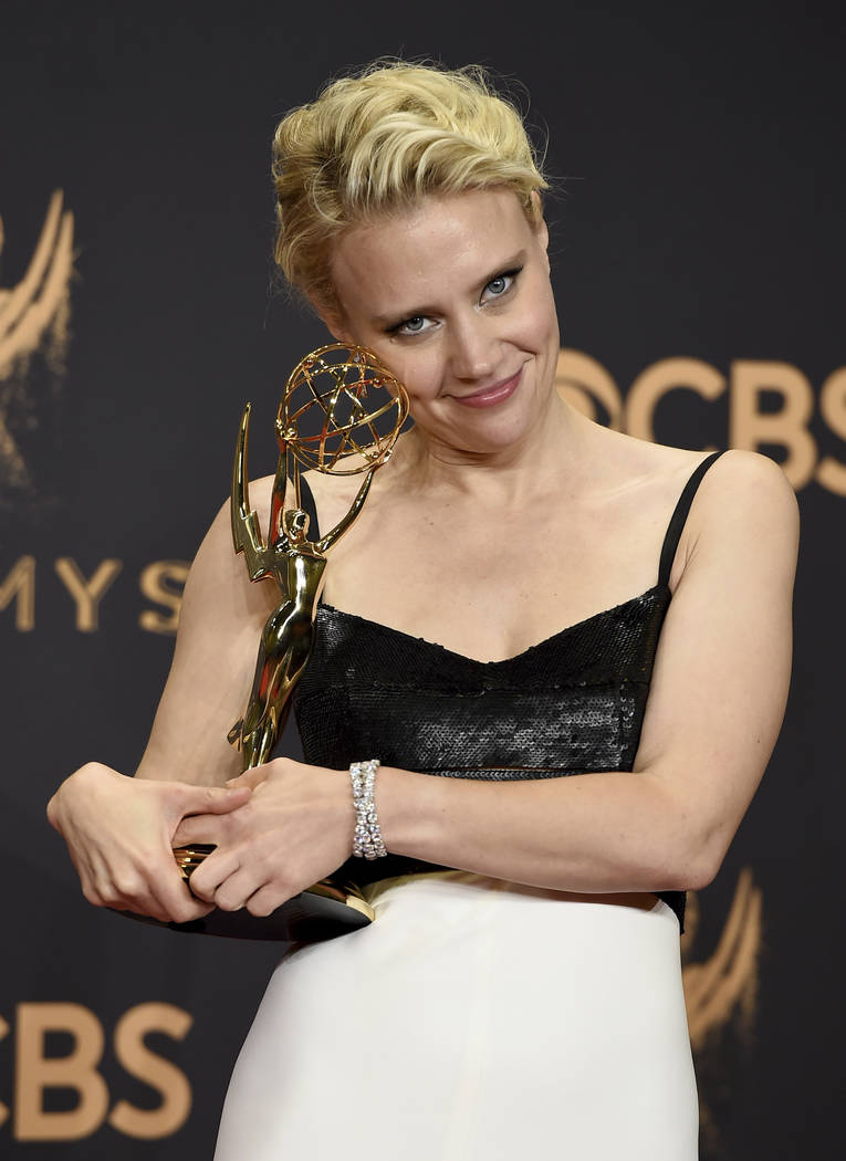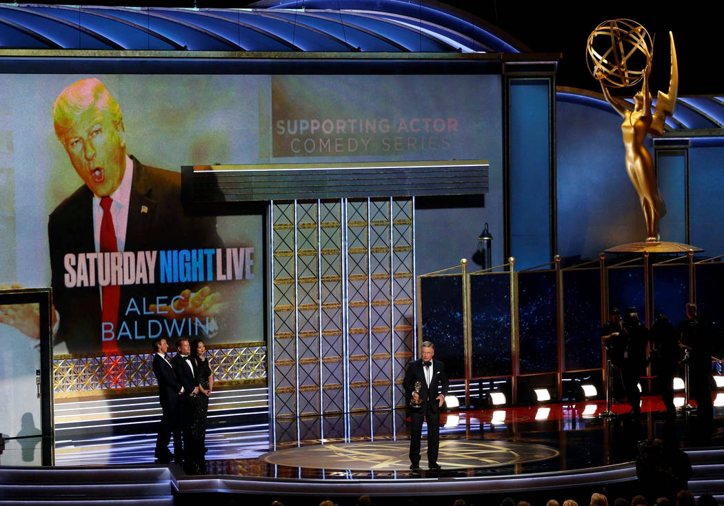 The trophies for best supporting comedy acting went to Kate McKinnon, who played Hillary Clinton on “SNL,” and Alec Baldwin for his Trump portrayal on the NBC show.