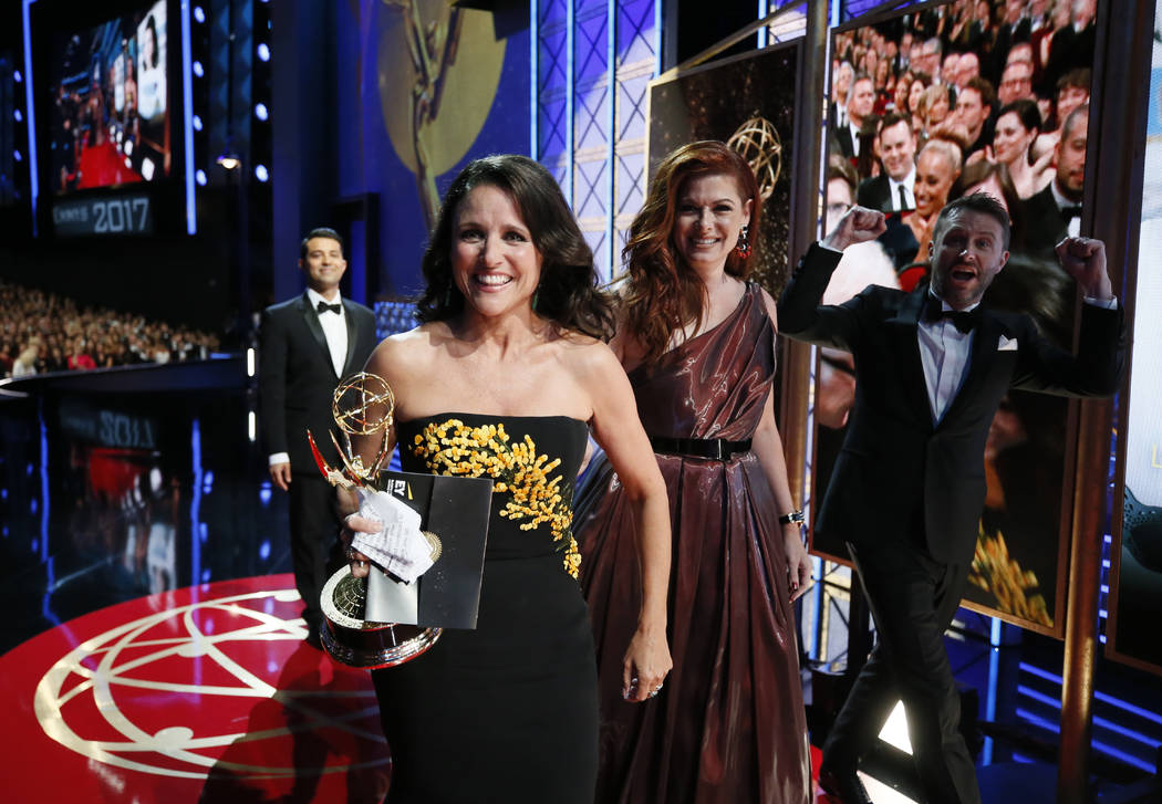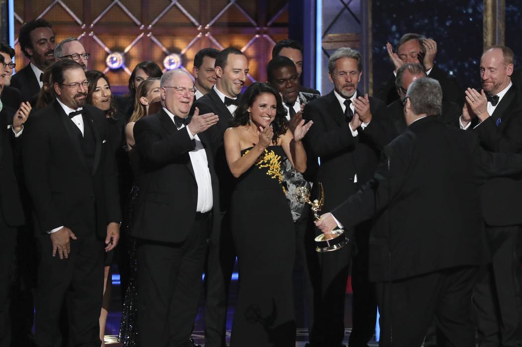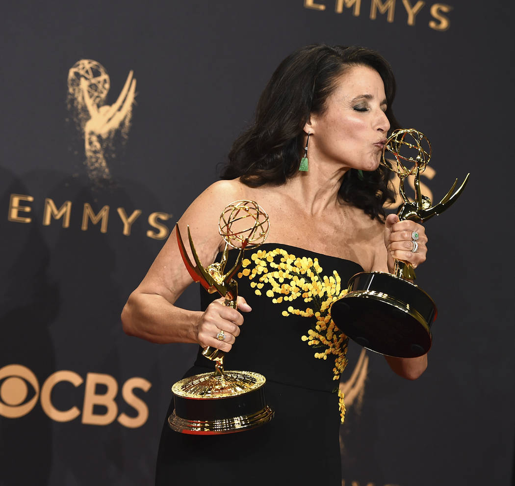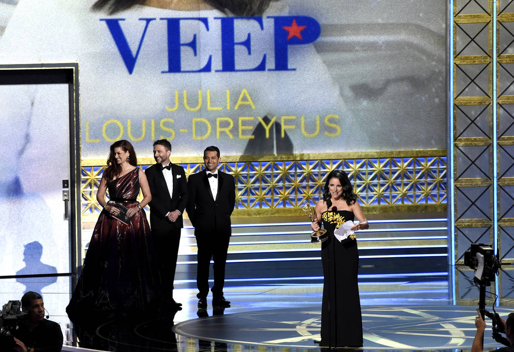 Combined with Emmys that Louis-Dreyfus has won for “Seinfeld” and “New Adventures of Old Christine,” her latest trophy tied her with Cloris Leachman as the most-winning Emmy performer ever. She called “Veep” an “adventure of utter joy,” but first made a sharp-edged joke about the show’s direction next season, its last.