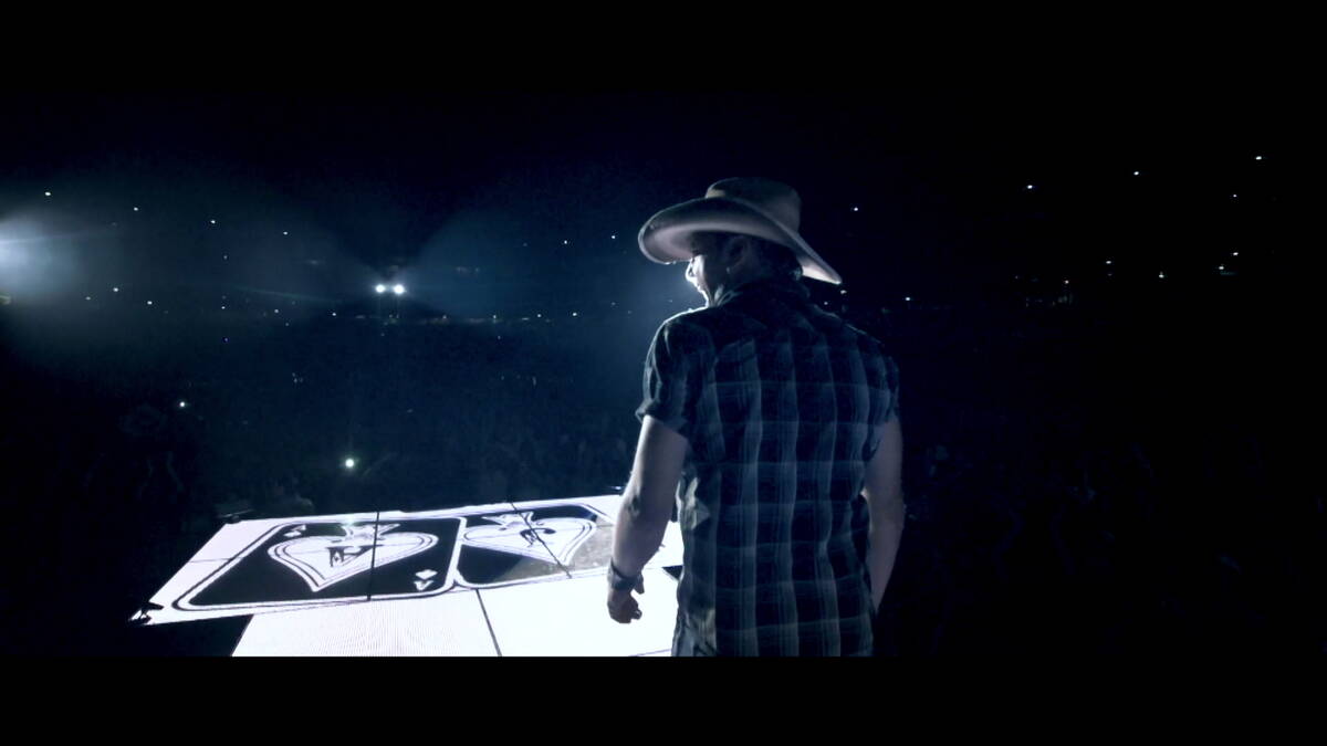 Headliner Jason Aldean has just launched into the boozy ballad “Any Ol’ Barstool.”